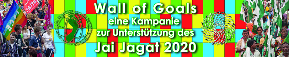 Mit der „Wall of Goals“ können alle  Teilnehmerinnen, Interessierte und den Zielen des Jai Jagat 2020 verbundene Menschen von der ganzen Welt aus, ihre individuellen Motive und Ziele in Genf darstellen. Sie wird eine Sammlung der Wünsche und Forderungen aller Menschen an die Weltgemeinschaft sein, die im Einklang mit dem Manifest des Jai Jagat 2020 stehen. Alle sind eingeladen, ob sie nur kurz mitwandern, den langen Weg bis Genf dabei sind oder nur wenig  zeitliche Möglichkeit haben sich zu engagieren.